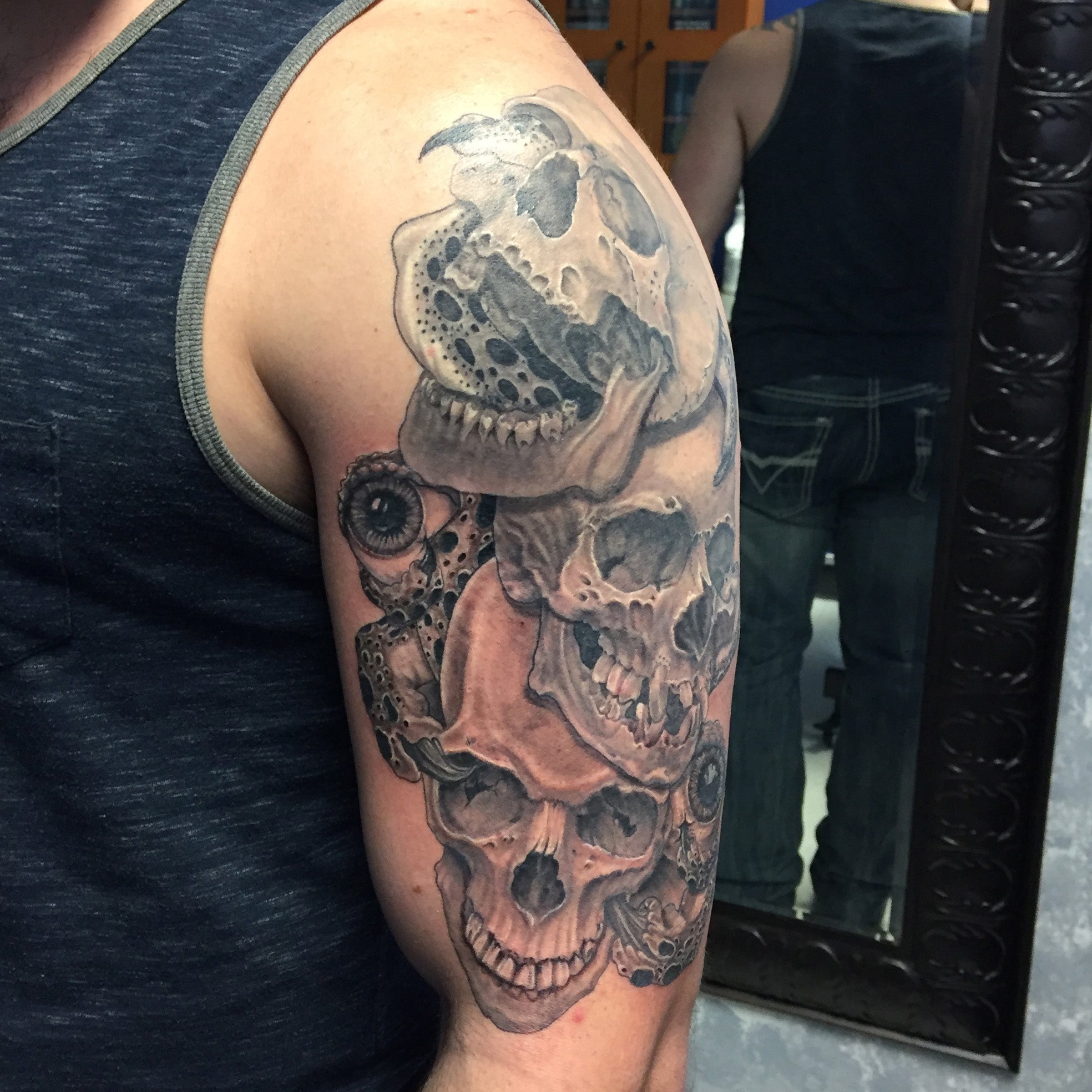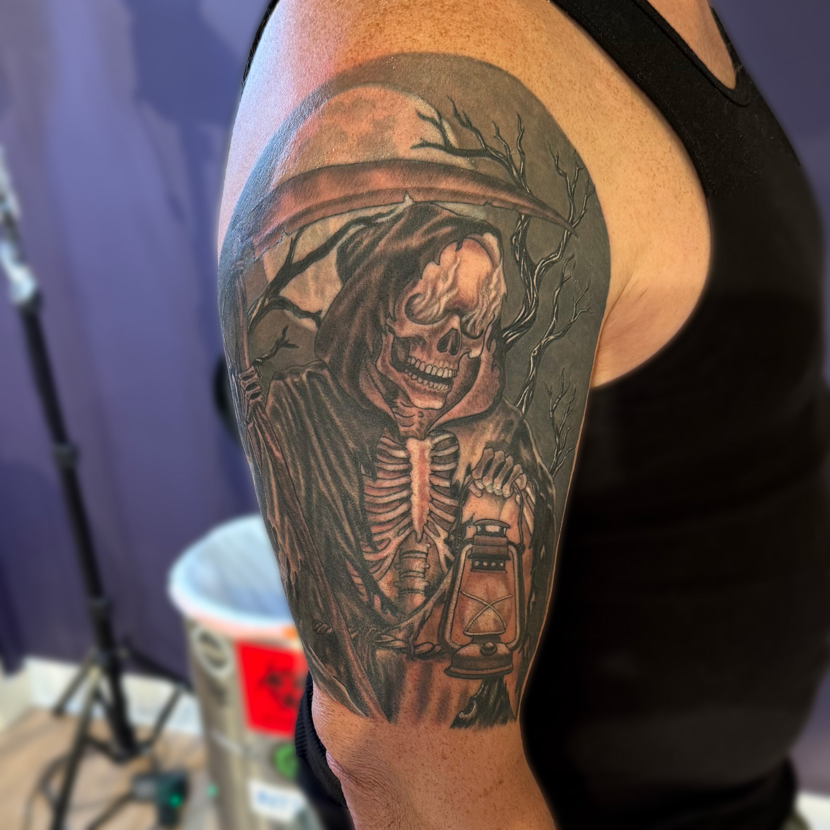 I have seventeen years of experience and specialize in color and black and grey tattoos, I work with many different styles, neo-traditional being one of my favorite. My passion for the art continues to grow with each tattoo, and watching a client's face light up when they see their completed tattoo for the first time is priceless. I hope you like what you see here and connect with me. I would love to do your next tattoo.